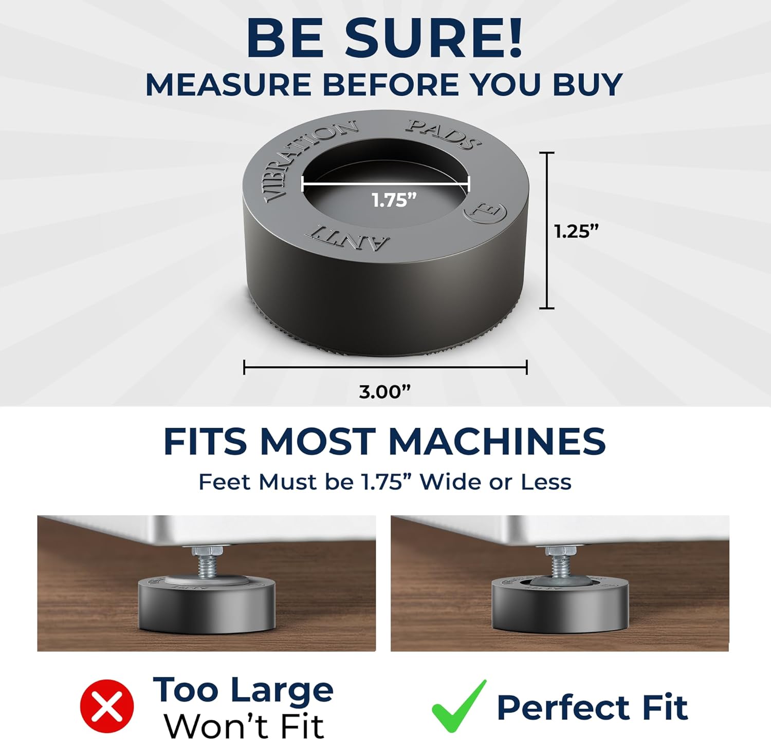 Dampen loud washing machines with Eleon's rubber anti vibration pads. Designed to have the best balance of floor grip, noise dampening, & durability.
