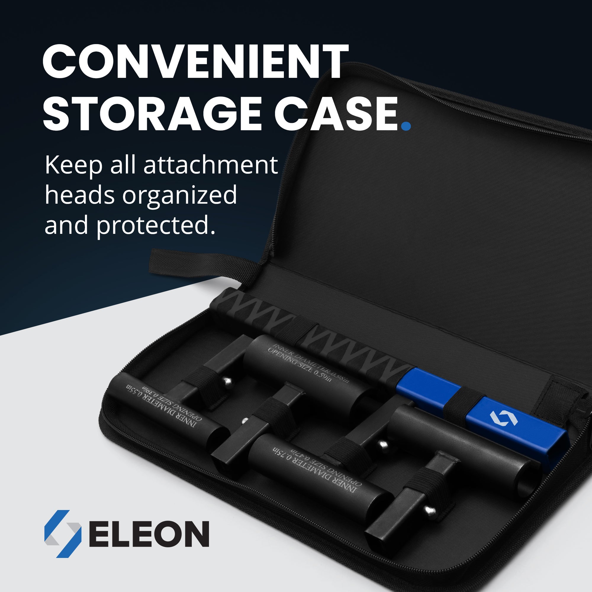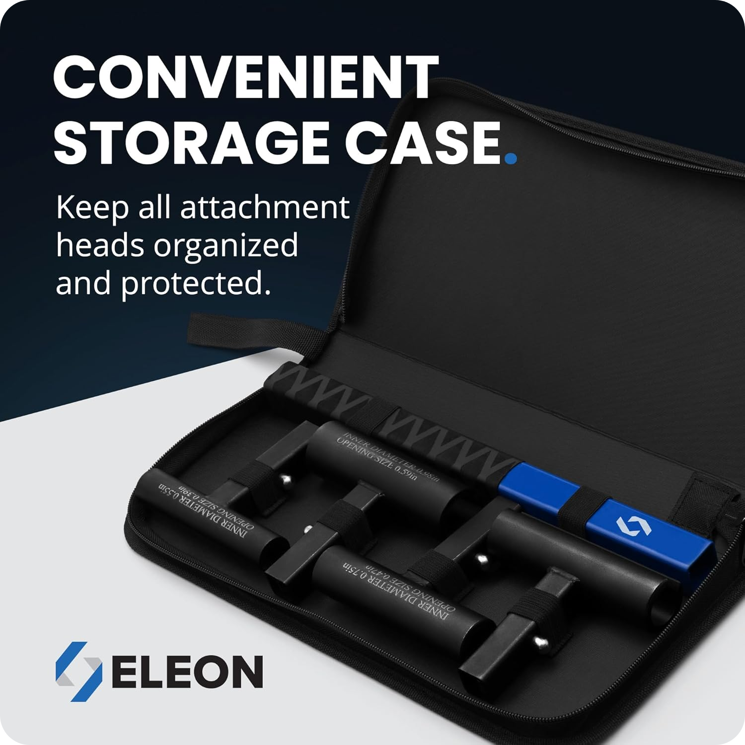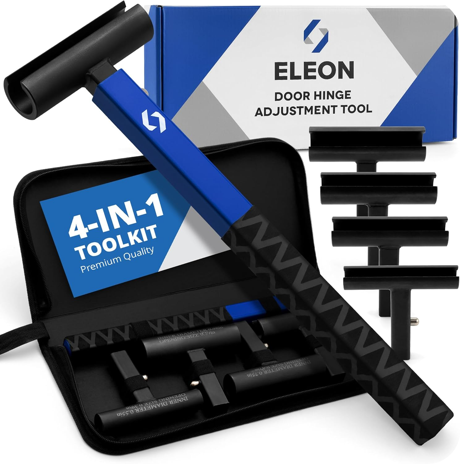 Includes four quick-swap attachment heads (0.55", 0.75", 0.86", and 0.98") for different hinge sizes and door types. Ideal for both residential and commercial applications—combining versatility and precision in one compact door hinge adjustment tool kit.