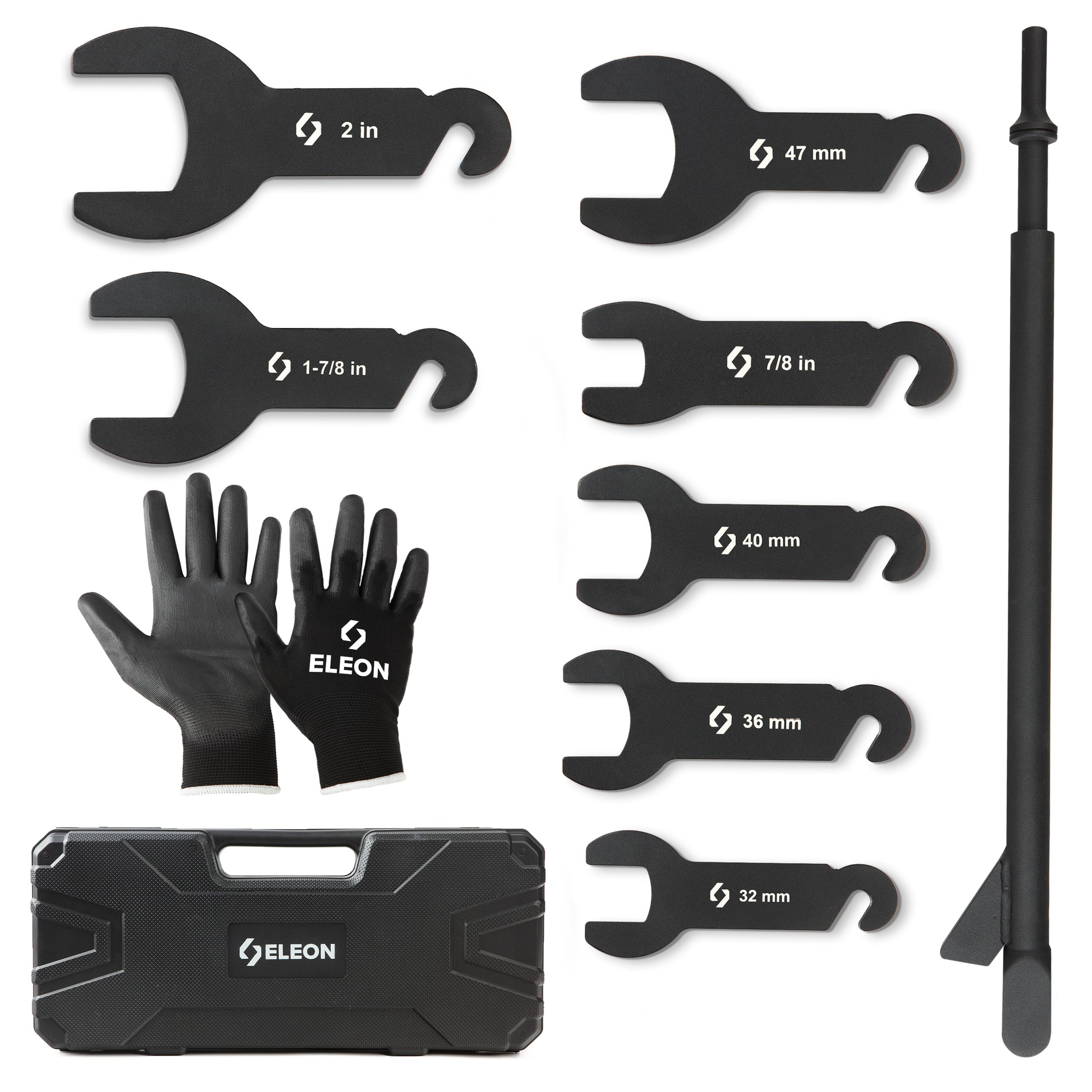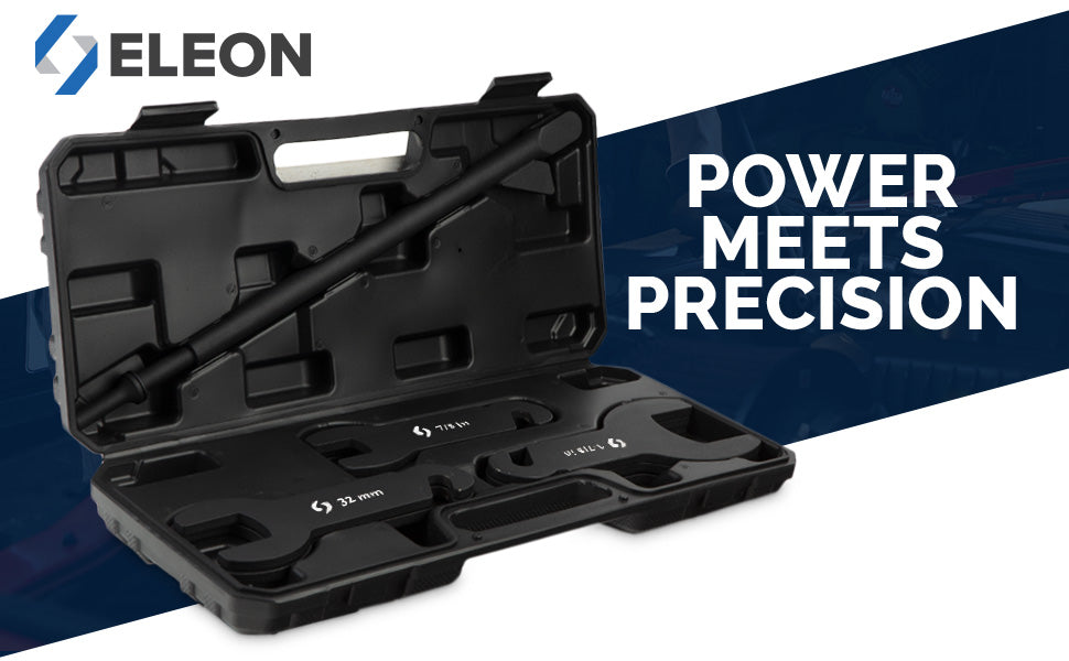 Includes 1 main rod, 7 attachment wrenches (7/8", 32mm, 36mm, 40mm, 47mm, 1-7/8", 2"), and a sturdy carrying case—designed to handle a variety of fan clutch sizes.