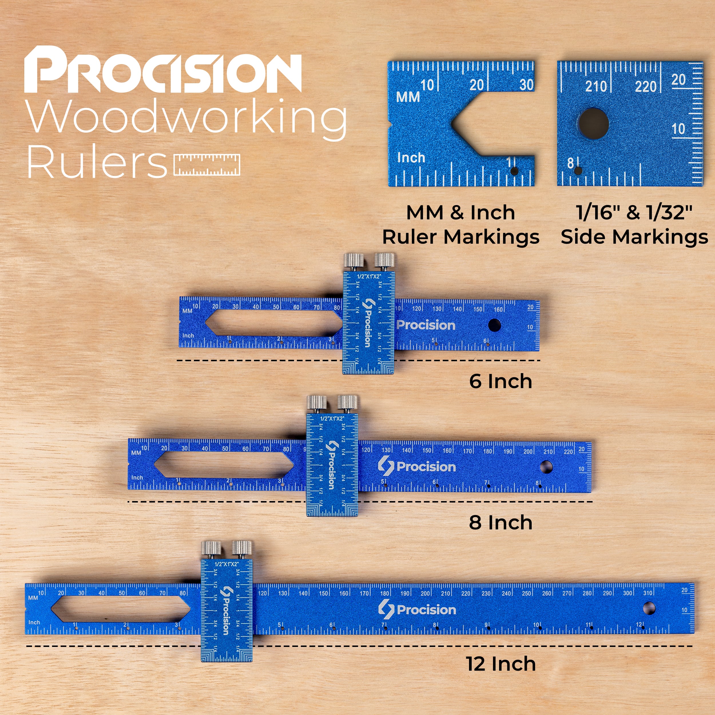 The benchmark ruler features hassle-free holes, enabling you to lock your slider in place once and draw multiple lines effortlessly. Increase efficiency and productivity in your woodworking projects.