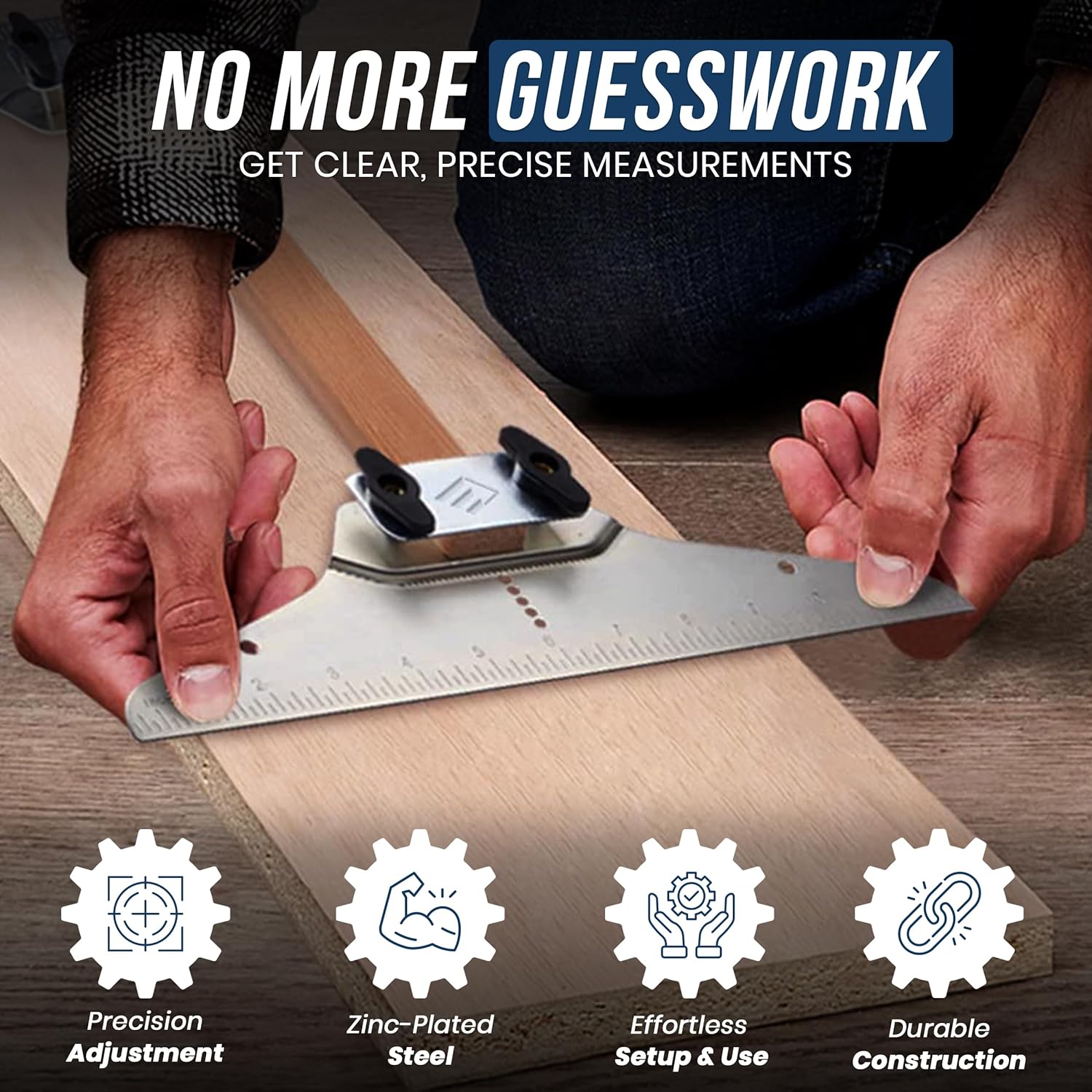 Meet the stair tread measuring tool you'll never feel the need to replace. Made of 2mm thick zinc-plated steel, this nifty headache-saver withstands the most demanding of projects while being a breeze to carry around.